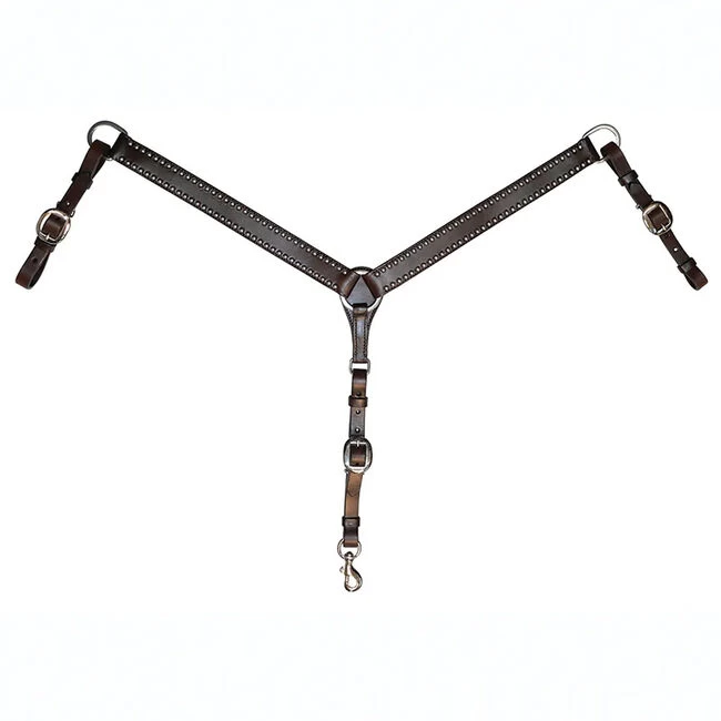 Great everyday straight breast collar. Made with quality leather; 1.5″ wide. Dressed up with nickel spot accents.