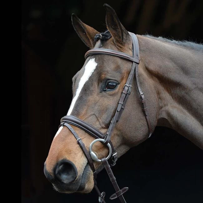 - Stylish raised Flash bridle with softly padded comfort crown headpiece raised padded browband and noseband