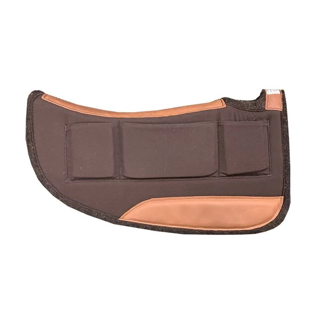 The Contoured Relief Pad has a durable cotton duck top with a 1″ Wool felt bottom. Contoured along the spine for a instant fit. The pockets contain 1/2″ Wool felt shims, which can be removed to better fit your saddle. Cut to a round barrel shape which is sized 30×30.