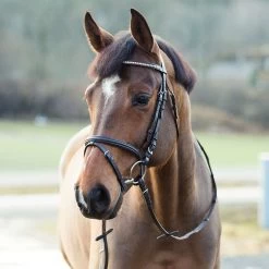 The Horze bitless Bridle offers riders an affordable bitless bridle choice. If you have considered the benefits of bitless bridles, the Horze Bitless Bridle may be exactly what you are looking for. This black leather bridle has a simple, clean design that can easily be fancied up with a new nose and/or headband. Riding with a bitless bridle is a great tool to use for horses who have difficulty accepting the bit. With pressure on the poll, chin and nose, the bitless bridle controls the horse through pressure points, allowing you to steer easily. Web reins complete this lovely raised bridle made of quality leather. If your horse seems calm and happy until you put the bit in his/her mouth, the bit might be the problem, causing pain you don’t realize. Try bitless.