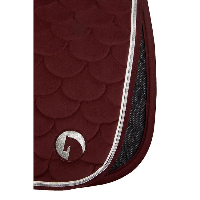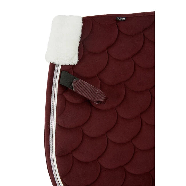 The Horze Geneva saddle pad is made from soft velvet material, and equipped with functional quick-dry lining. Faux fur, luxurious quilting and double cord piping look stunning. The protective boot area prevents scratches.