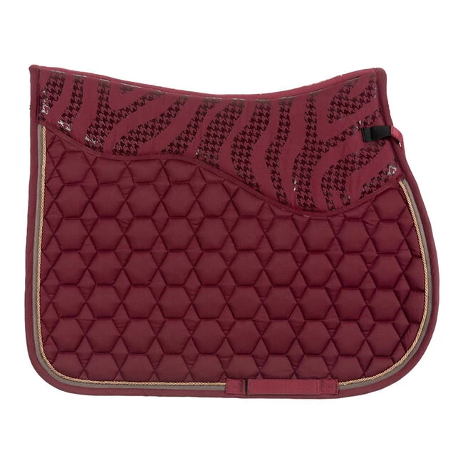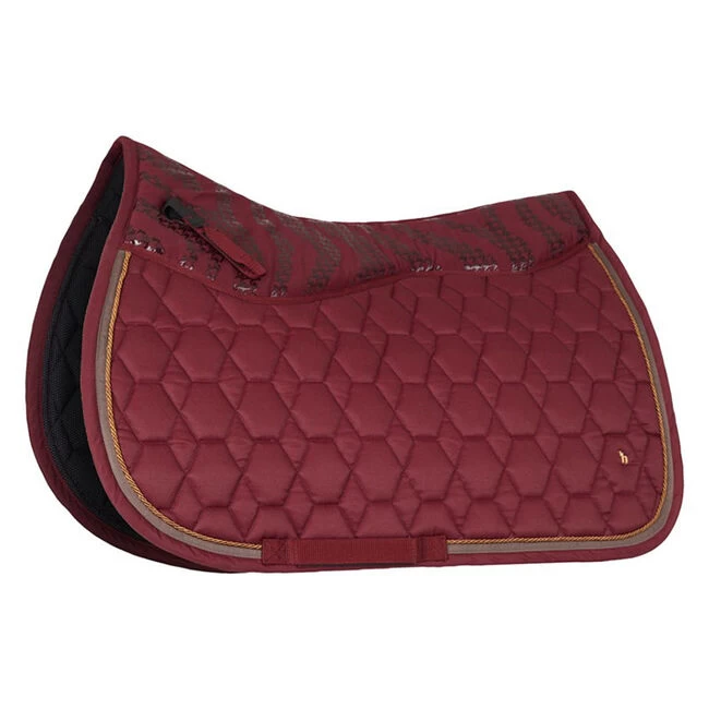 This saddle pad holds your saddle in place. The anatomically cut Horze Kenya saddle pad is equipped with a silicone detail to prevent the saddle from slipping. Light padding beneath the saddle adds extra comfort. Moisture wicking lining keeps your horse’s back dry. Three rows of pipinig and the timeless design add a classic look. Metallic details make for an elegant look. Pair this saddle pad with the rest of the Horze Kenya range for a full outfit.