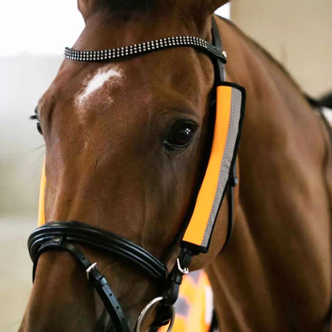 Reflective Bridle Cover in high visibility neoprene. Easy to use. 4 piece set. Orange.