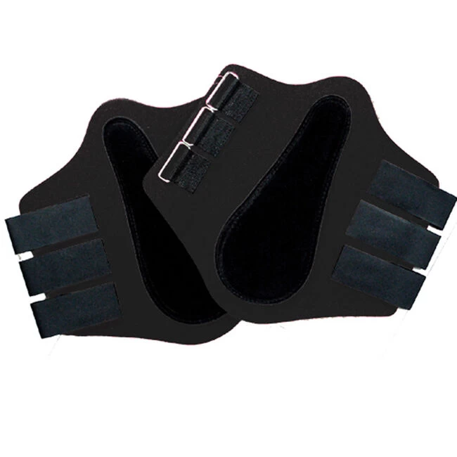 These hind splint boots are made of neoprene with black padded suede overlay and three reverse grip hook and loop straps. They offer good protection to the inside of the horse’s leg. Easy to use, easy to care for.