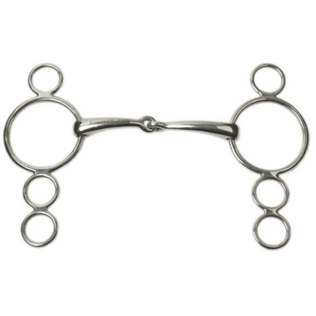 The curved design of the JP bit mouthpiece reduces tongue pinching and direct pressure on the tongue for a more comfortable fit. It also aids in stopping the bit from hitting the roof of the mouth and encourages relaxation and salivation.