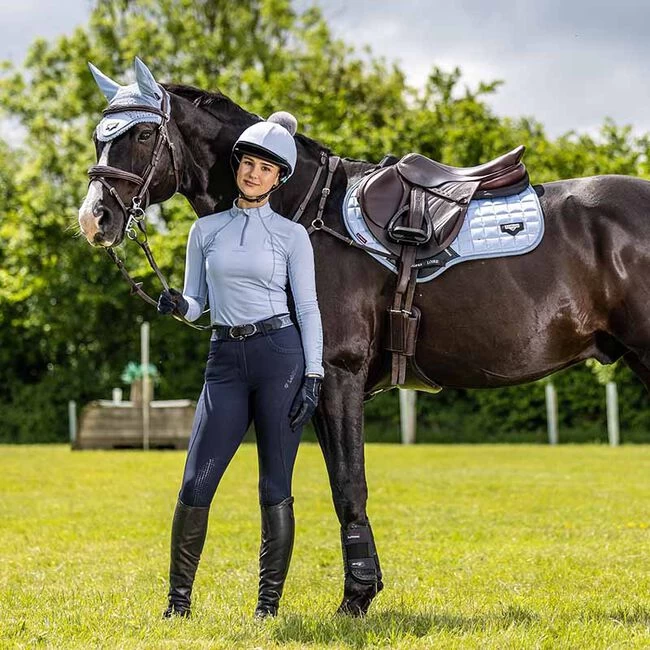 The textured PU leather girth protection area is complimented by an embossed logo and carries the usual signature LeMieux lower girth strap with its inner locking loops. The piece de resistance of the Loire Close Contact Square is its unique metal badge on a leather mount in the lower back corner.