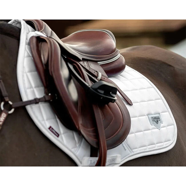 The textured PU leather girth protection area is complimented by an embossed logo and carries the usual signature LeMieux lower girth strap with its inner locking loops. The piece de resistance of the Loire Close Contact Square is its unique metal badge on a leather mount in the lower back corner.
