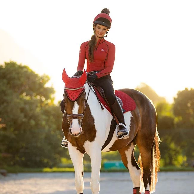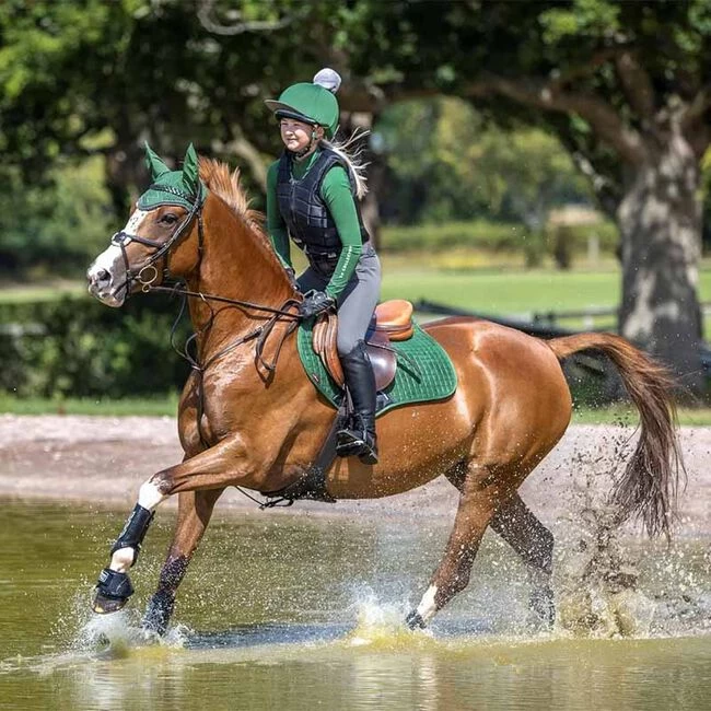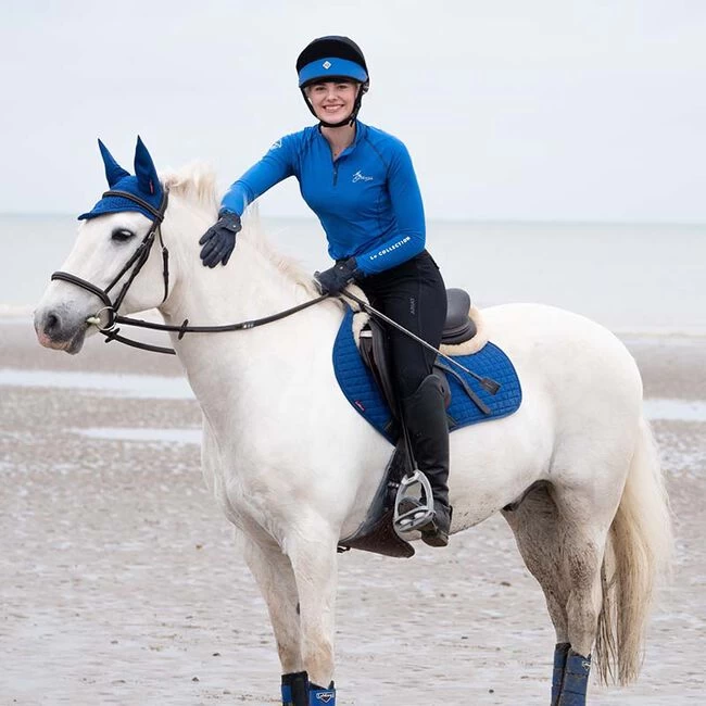 Now with a New Super Soft Suede Binding and New PU Leather Girth Protection area, the classic Close-Contact cut from LeMieux is designed to fit a wide range of more forward cut jumping saddles. Now one of the most iconic jumping pads with its high wither, elasticated D-Ring tabs and swept back profile . These saddle pads offer a very sleek and professional look to anyone’s saddle. The luxurious suede top side and new soft suede binding is complimented by super soft Bamboo lining which absorbs & controls sweat under the saddle and is beautifully comfortable and secure – minimising friction even on sensitive skinned horses. Girth keepers incorporate inner locking loops to offer more girthing options.