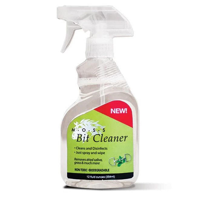 Sure to become a tack box favorite, the MOSS Bit Cleaner and Disinfectant Spray is a non-toxic, biodegradable formula designed to remove dried saliva, grass, and unwanted residues. Cleaning while disinfecting, this biodegradable formula will break up the toughest of residues and is safe for all metal types. A natural peppermint aroma makes the bit cleaning process pleasant, while the delicious flavor will be appreciated by your equine partner!