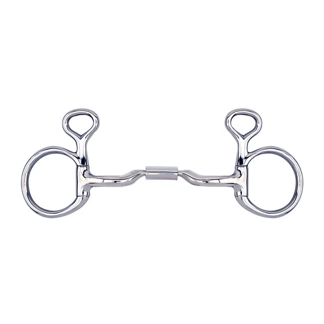 The MB 04 is similar to the MB 02 in that it will rotate on the tongue and apply tongue pressure, however, it has a small (¼”) port that introduces some tongue relief to the horse. The port allows the horse to swallow and move his tongue when he is moving forward and relaxed, which acts as a release or reward. The mouthpiece is curved, and it wraps around the bars and lips instead of pinching.