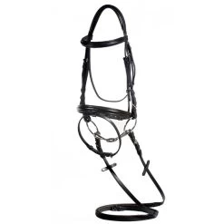 The Brentina is an elegant English Dressage bridle crafted from the highest quality American leather. This bridle features an extremely soft, padded crown. The flash cavesson and brow band are also padded for the comfort of your horse. 5/8” cheeks with buckle ends. The Brentina comes complete with rubber reins.