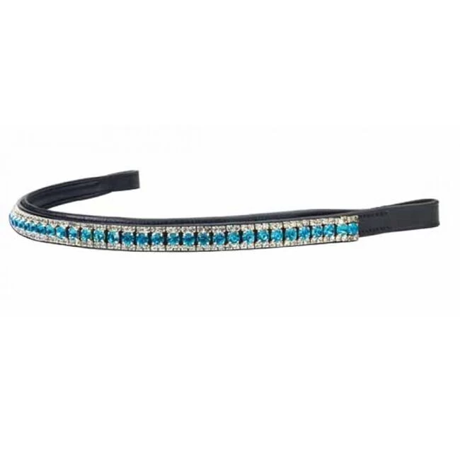 The Ovation® Tiffany Crystal Browband is adorned with beautiful turquoise and clear stones on a padded black browband. It is sure to add sparkle to your horse’s show attire.
