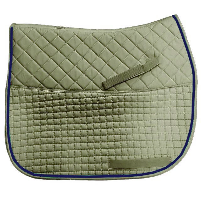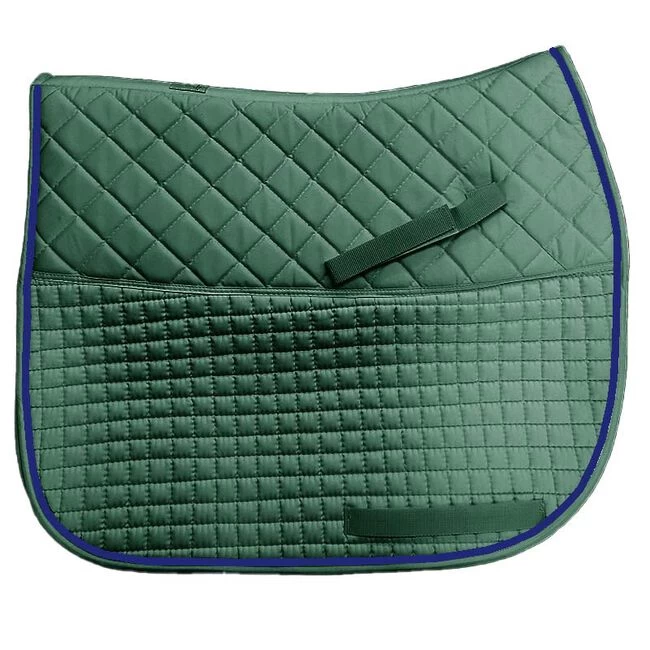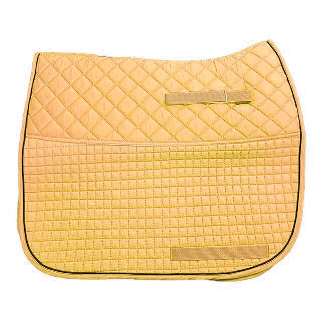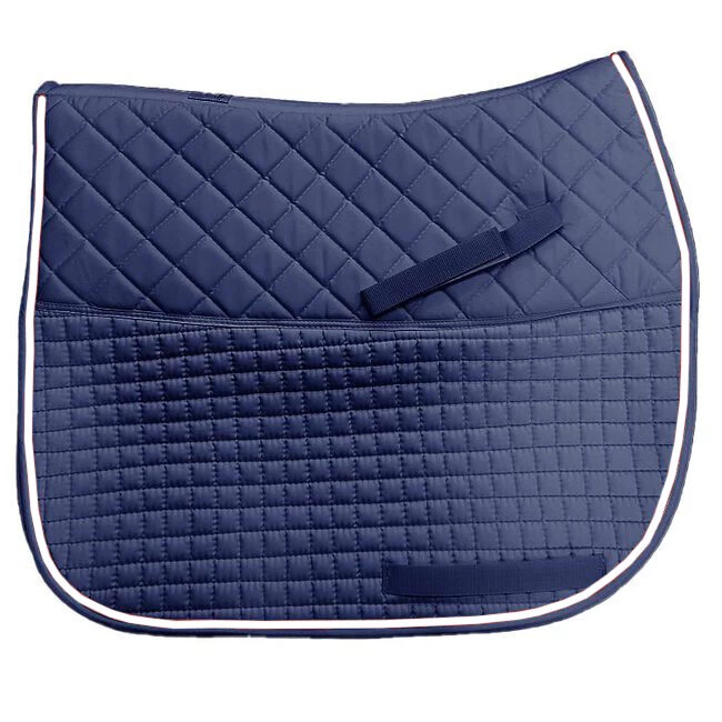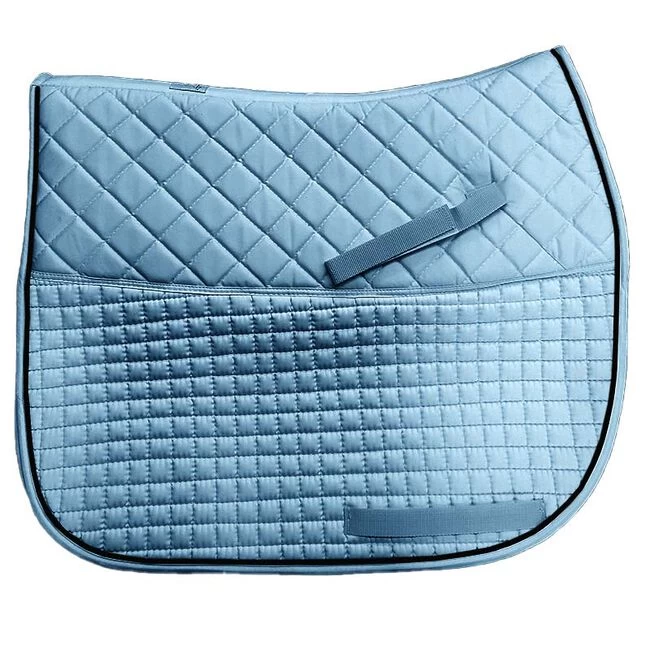 The PRI Double Padded Dressage Pad is a thick and durable dressage pad that is perfect for schooling, training, clinics, and so much more. There is a layer of fleece lining under the saddle that absorbs impact and provides extra relief to the horse’s back while preventing painful pressure points. The cushioning means that you do not need to use another half pad to protect your horse’s back. The quilted cotton pad provides a classic look and is comfortable for your horse. The popular saddle pad features nylon girth straps and hook and loop (velcro) billet straps. The spine of the saddle pad is cut to accommodate horses with high withers and various other conformations.