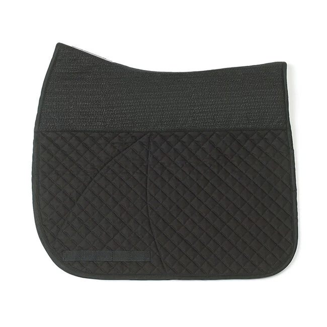 The Deluxe Dressage No-Slip pad will keep your saddle pad and saddle in place. No more bunching up behind your leg, no more saddle slipping too far back or riding up the neck and no more over tightening of girths. This pad prevents slippage on even the hardest to fit horses. The fully contoured top line ensures comfort for your horse.