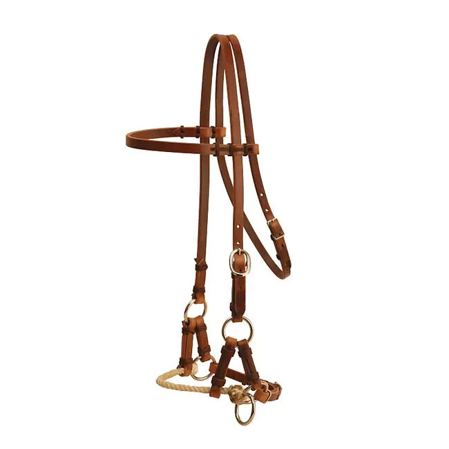 The Single Nose Side Pull is designed for starting a young horse. The contact on the nose gives control and the rein rings enable you to teach the horse to give his head.