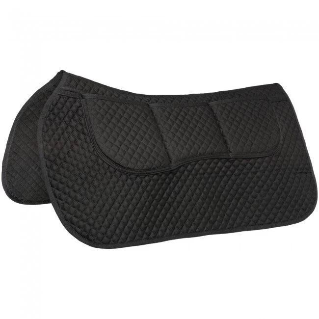 This pad is constructed of comfortable moisture wicking cotton. Six shim pockets are strategically located giving you the ability to correct a variety of saddle fitting issues by removing ½” felt shim pads that are included. The Ultimate Foundation saddle pad can be used under a saddle blanket or as a stand-alone pad. 31” x 32”