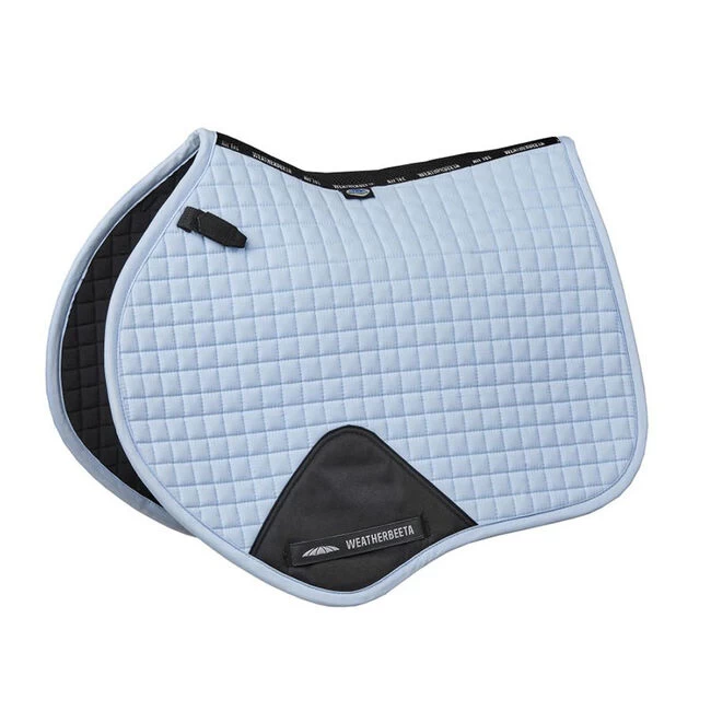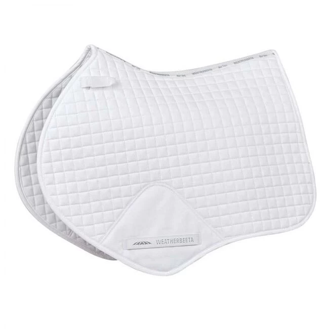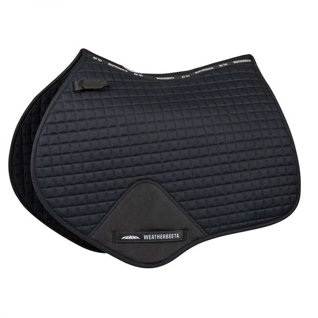 The durable WeatherBeeta Prime Jump Saddle Pad is a cotton pad and has a wick easy lining to help keep your horse cool, dry and comfortable. This jump saddle pad has a breathable mesh spine for extra airflow and a PVC covered girth patch for added durability. The high wither design allows for extra space where needed.