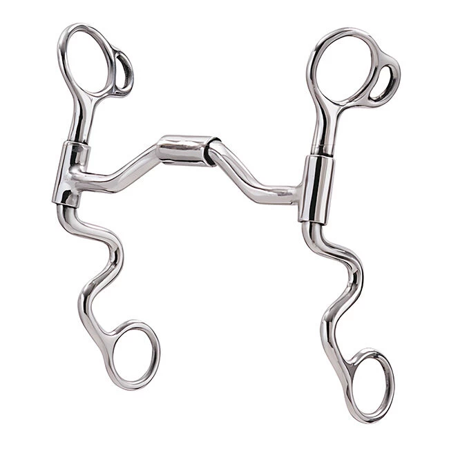 This stainless steel training bit has a jointed swivel port mouth and 6-1/2″ cavalry shank loose cheeks.