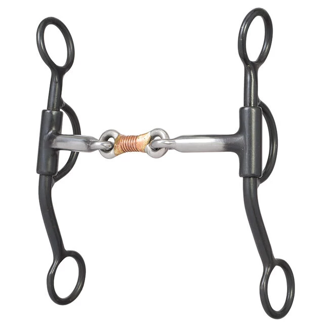 Quality-made shank bit features a sweet iron copper wire wrapped dogbone mouth and 7″ cheeks. Black steel.