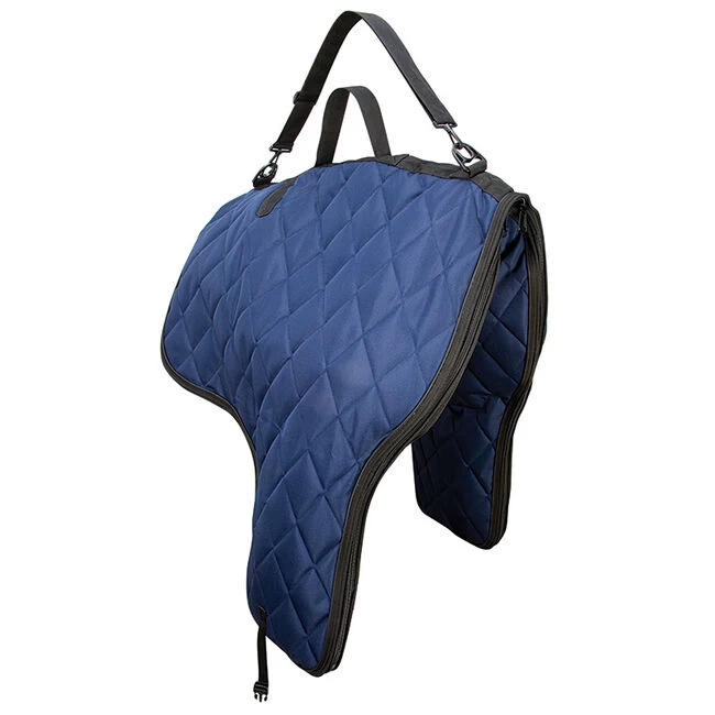 This top quality saddle cover protects western saddles from dirt, dust, scratches and weather during travel and storage. Features a quilted and lined nylon design for maximum performance. Large zippers make it easy to get the saddle in and out. Webbing handle and detachable, adjustable shoulder strap make for easy carrying.