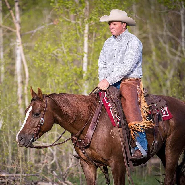 This black steel snaffle bit features a sweet iron mouth with copper inlay and 7″ cheeks. Recommended by Stacy Westfall.